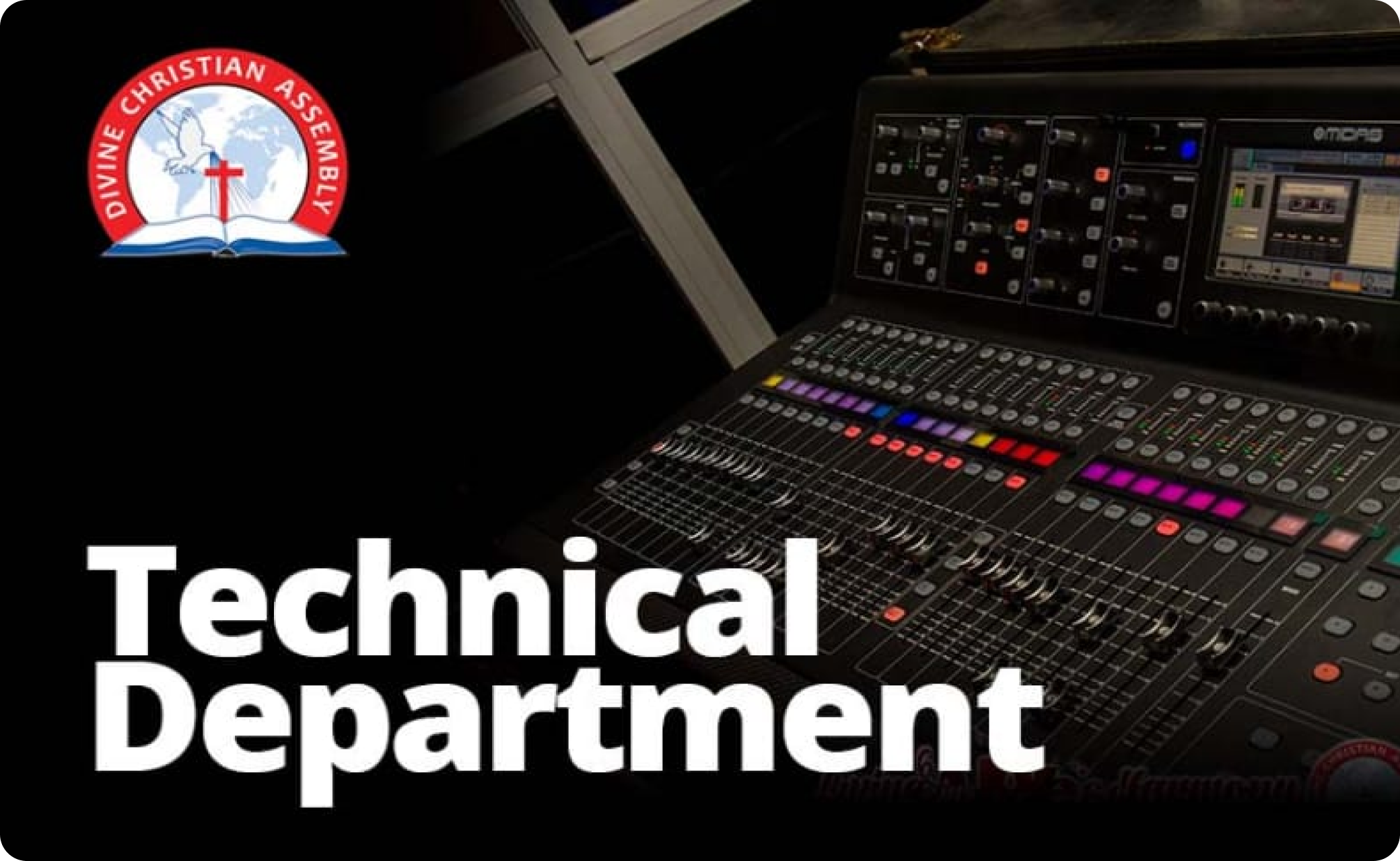 We have a great technical team with special attention to details. They help us in the area of sound engineering and all that pertains to the technical aspect of the ministry. Under this department also are the maintenance team that help with monitoring of our generator, Lights and equipments. Prayerfully feel free to join this department.
